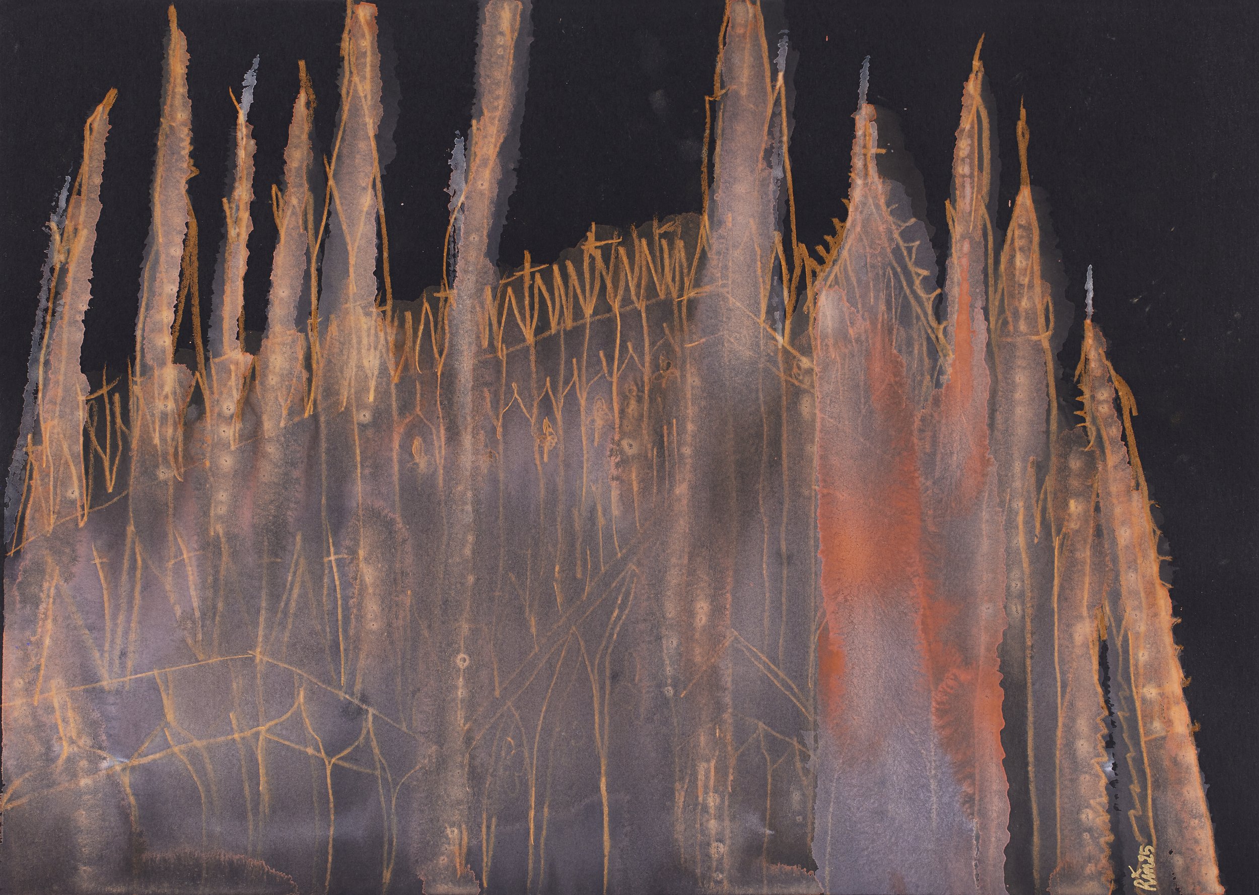 Rinaldo Invernizzi, "Fog and Vanitas: Visions of the Duomo di Milano 09-72", tecnica mista su carta, 21x29,5cm.